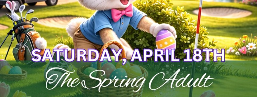 Join us for The Spring Adult Eggs-Travaganza Outing, a one-of-a-kind event combining golf, prizes, and an egg hunt just for adults. Leave the kids to their egg hunts back home and plan your own golf adventure—this outing is packed with excitement, laughter, and chances to win!